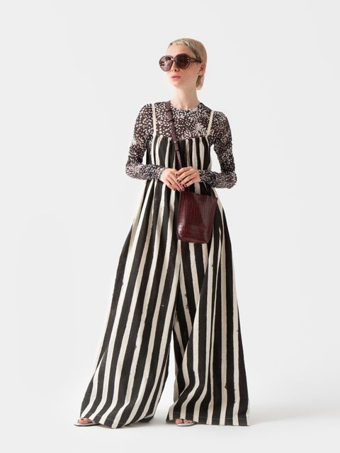شلوار زنانه نخی مشکی صبح خاکستری طرح یک