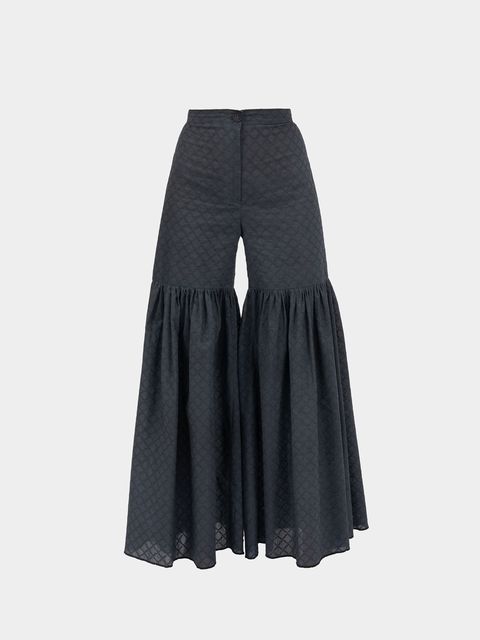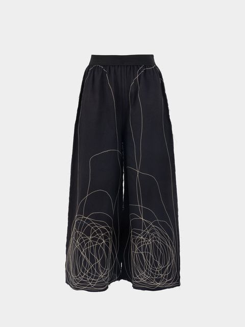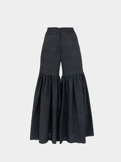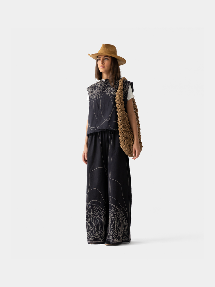 شلوار زنانه نخی مشکی صبح خاکستری طرح دو