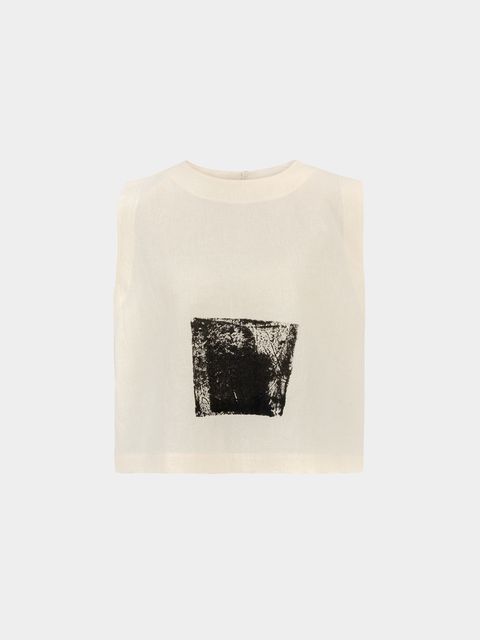 تاپ زنانه نخ پنبه سفید همیشه بهار طرح مربع