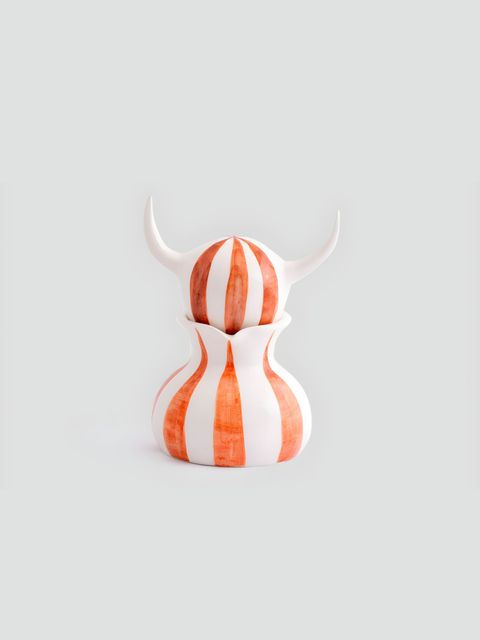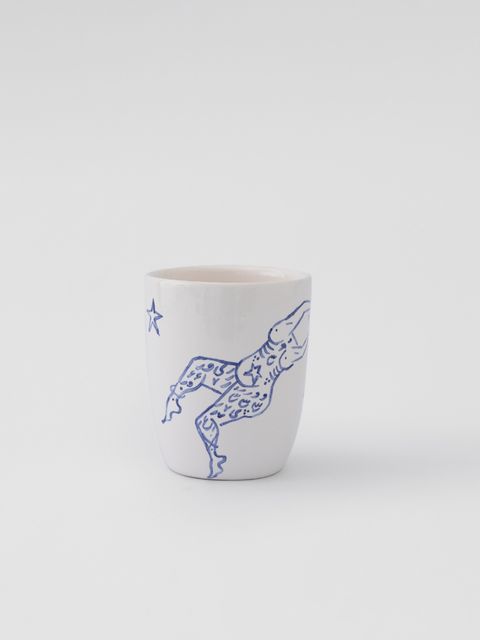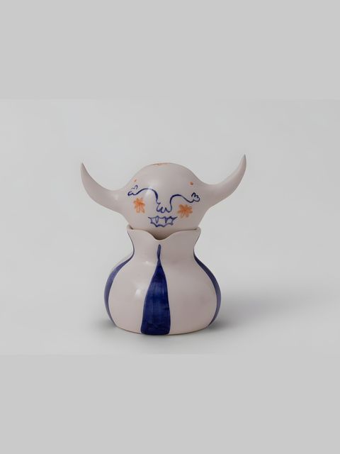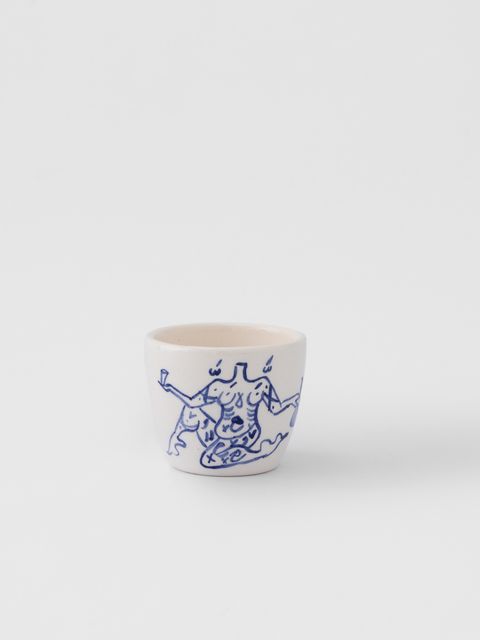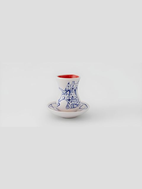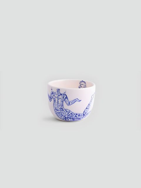لیوان سرامیکی سفید و لاجوردی زن و سر دیو