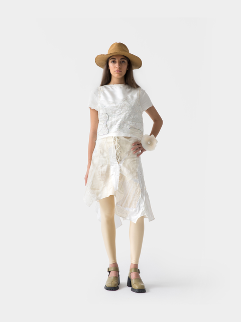 در لغت نامه همان دیباه است، نوعی قماش ابریشمی و گران بها، به معنی حریرِنیکو. دیبه پارچه را جوهره یا ذات تعبیر میکند، چیزی که بی شکل است و درون هیچ ساختاری جای نگرفته، هویت آن با برش و دوخت صورت بندی می شود و قالبی به خود می گیرد. این طراح فعالیت خود را از سال 1398 شروع کرده تمرکزش بر روی پارچه سازی به واسطه تکنیک های مختلف می باشد که از خصوصیات بارز این پارچه ها استفاده کند. هم چنین پارچه های دورریزی که در خیاطی های خاموش انبار شده بودند یا لباس های بلا استفاده ای هستند که قابلیت حیات دارند این محصولات پارچه ای محدود به شعاع تن نیستند ومی توانند فضای محیط پیرامون تن را نیز، شامل شوند.محصولات دیبَه احتیاج به مراقبت و دقت در شست و شو و نگه داری دارند.