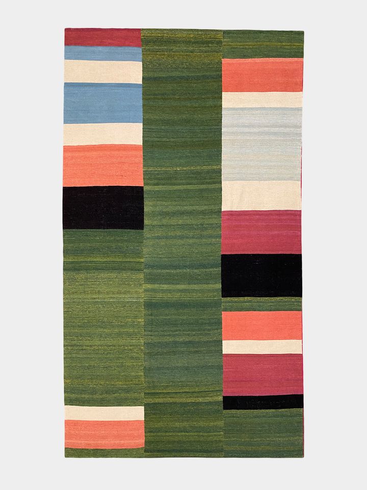گلیم پشم راه راه سبز آبی الوان کیاسر