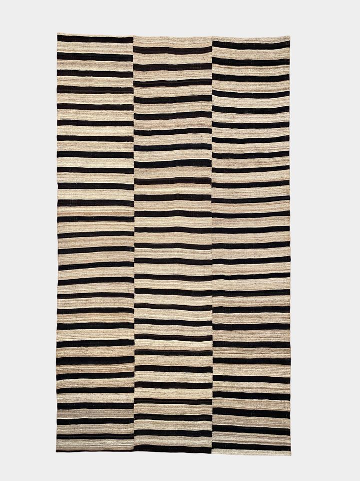 گلیم پشم راه راه افقی سیاه و سفید کیاسر