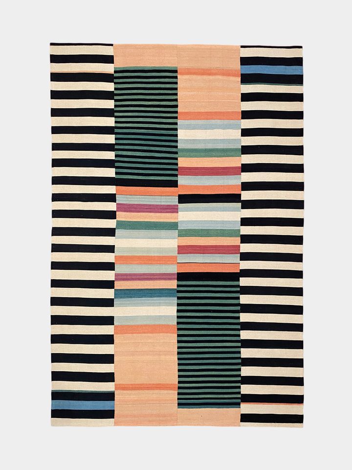 گلیم پشم راه راه نارنجی سبز الوان کیاسر