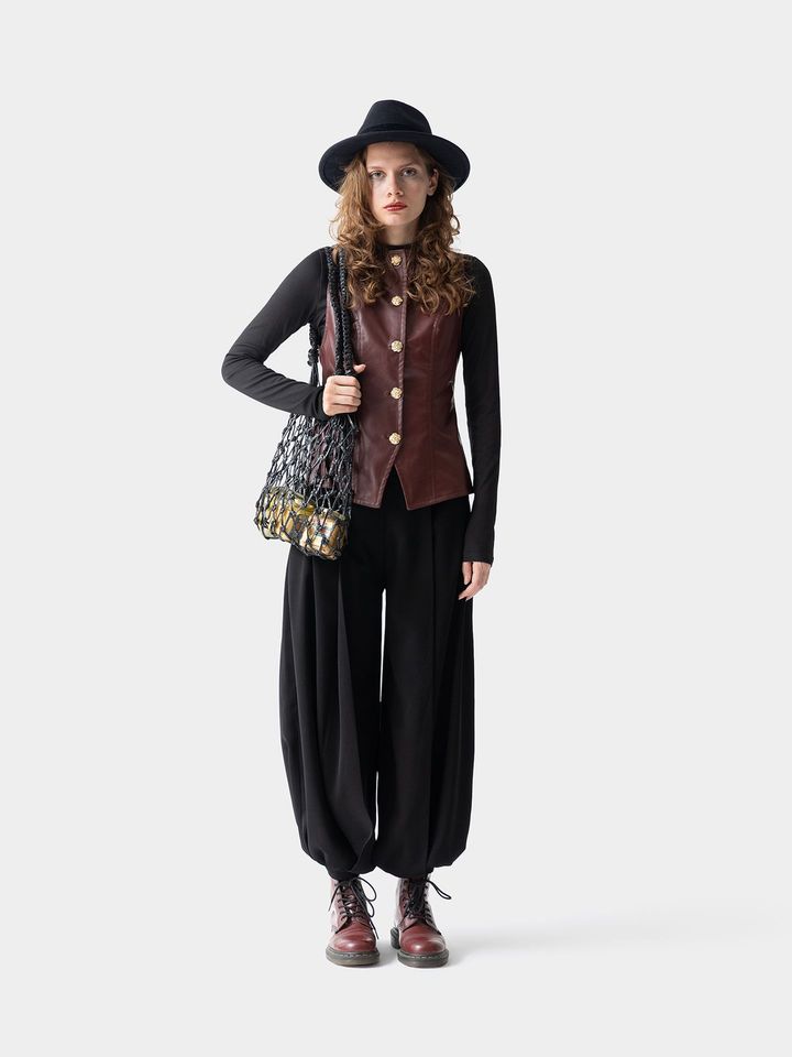 تاپ چرم زرشکی