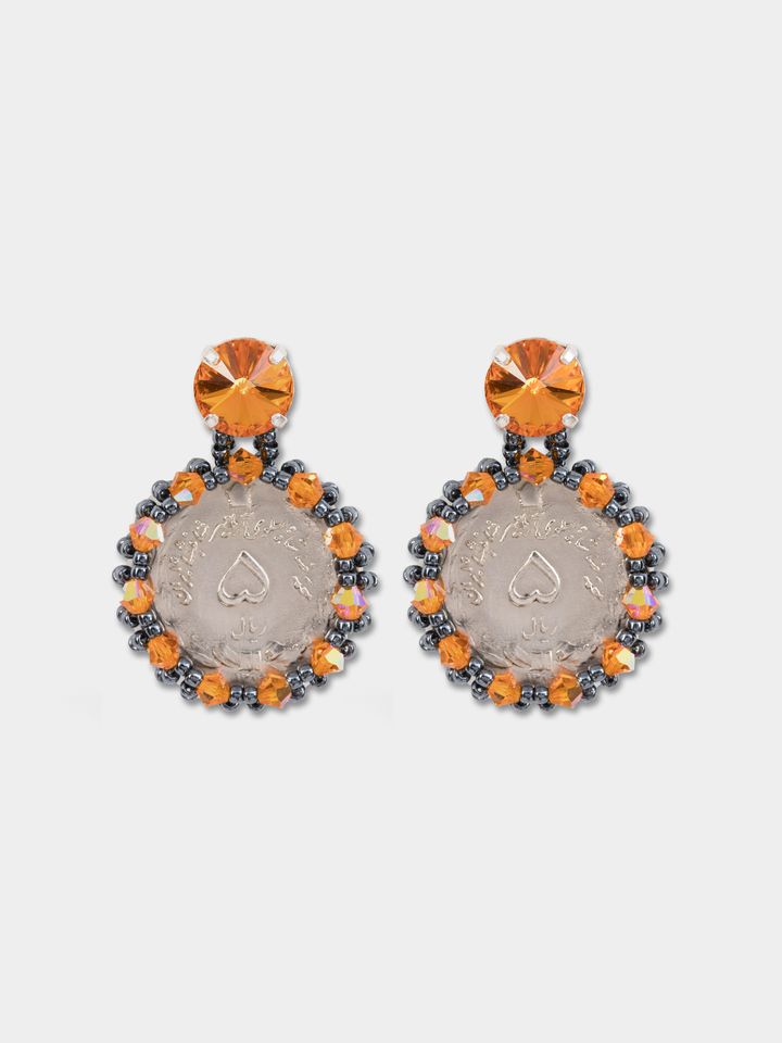 گوشواره زنانه سنگ و سکه ی طوسی نارنجی