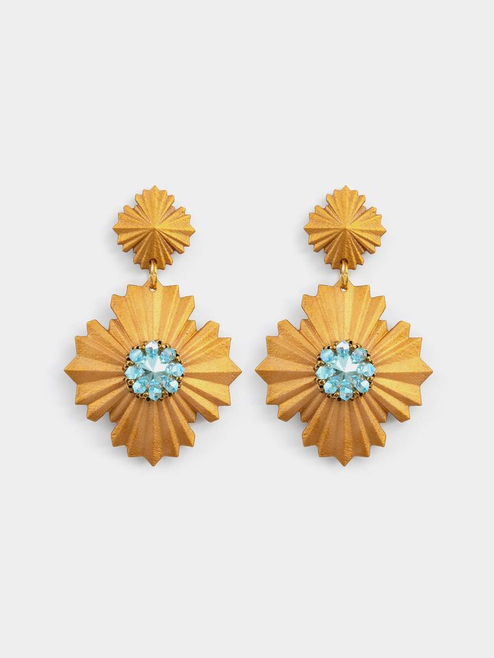 گوشواره زنانه تهران سه بعدی طلایی آبی