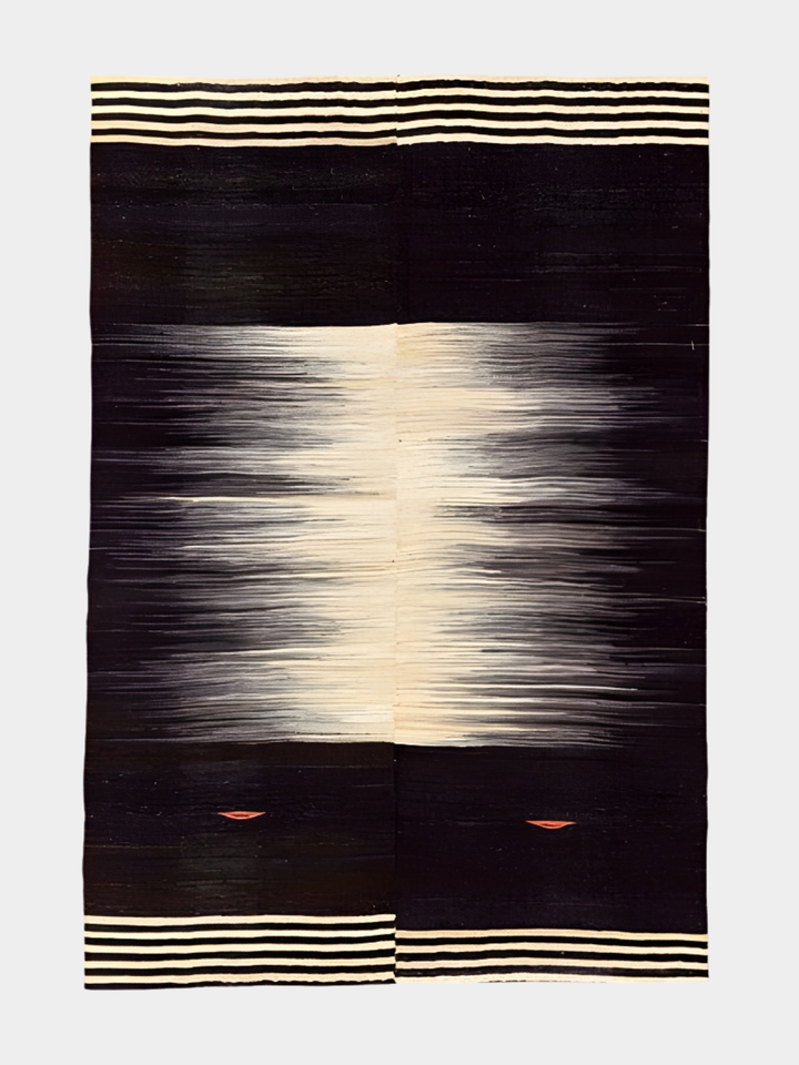 گلیم پشم مشکی سفید الوان کیاسر