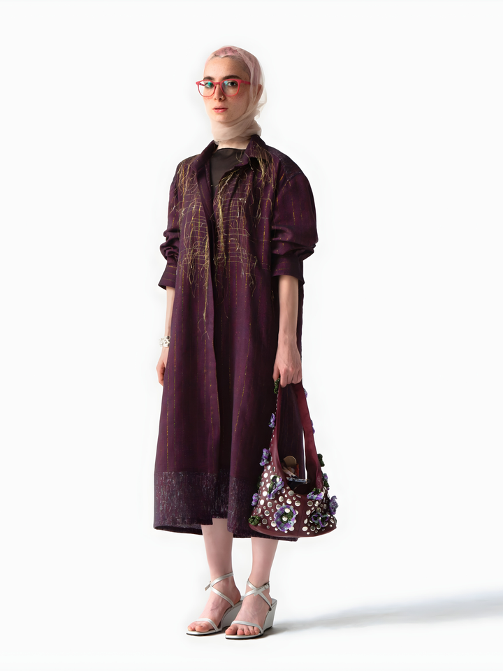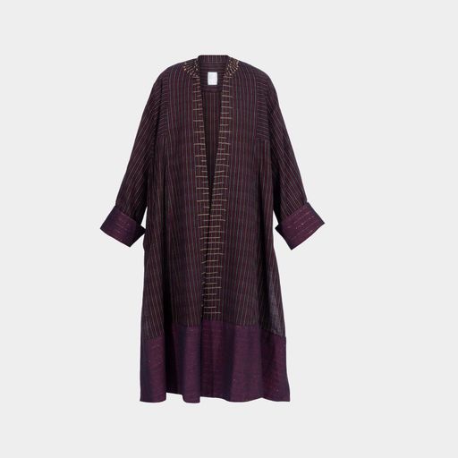 عبا زنانه پنبه زرشکی بادمجانی راه راه یزدی