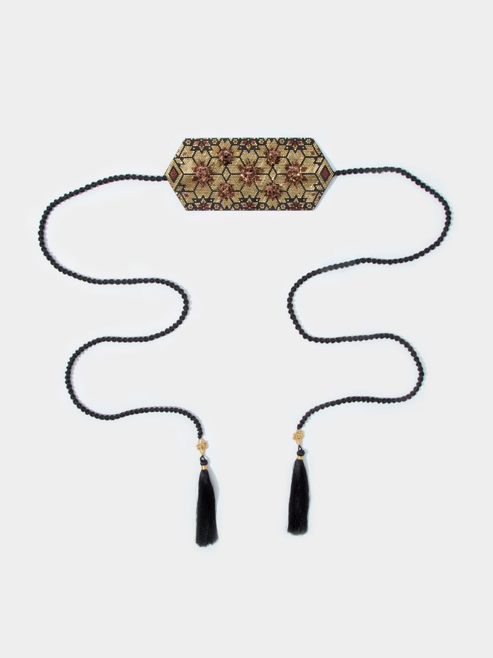 کمربند افرا طلایی و مسی گلدار