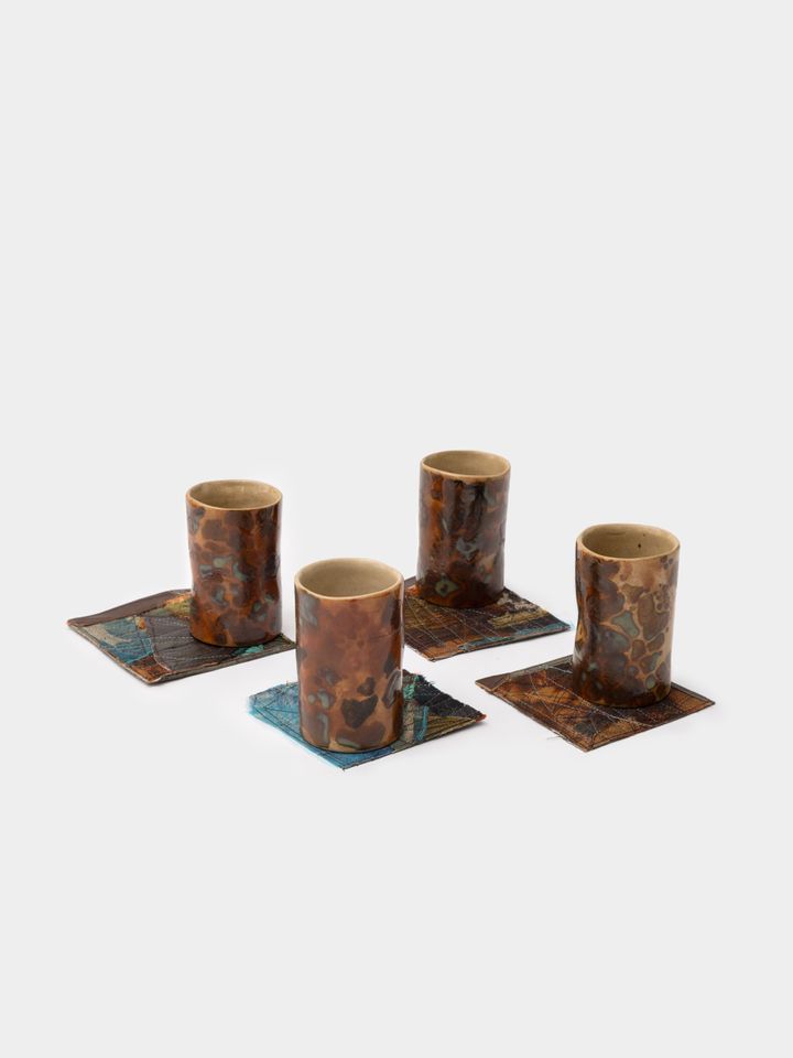 ست چهارتایی لیوان فیروزه ای قهوه ای آبگیر