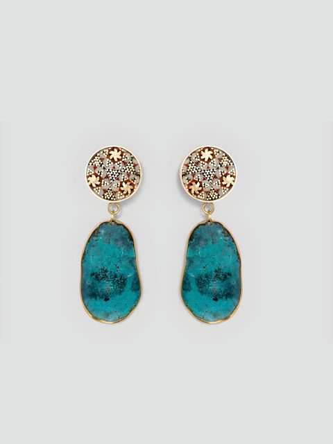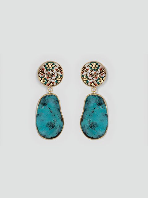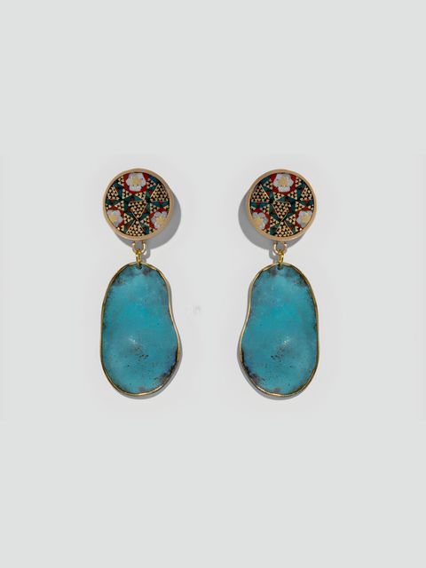گوشواره زنانه خاتم و برنج آدورن آبی سبز