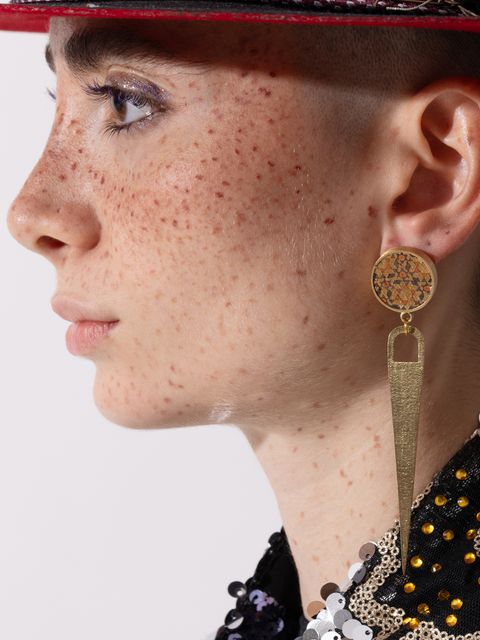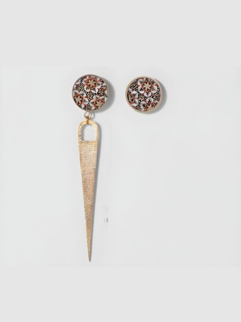 گوشواره زنانه برنج و خاتم تردیشنال طلایی تا به تا (تیغه)
