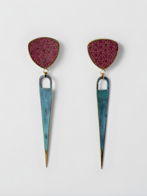 گوشواره زنانه برنج و خاتم پتینه (تیغه)
