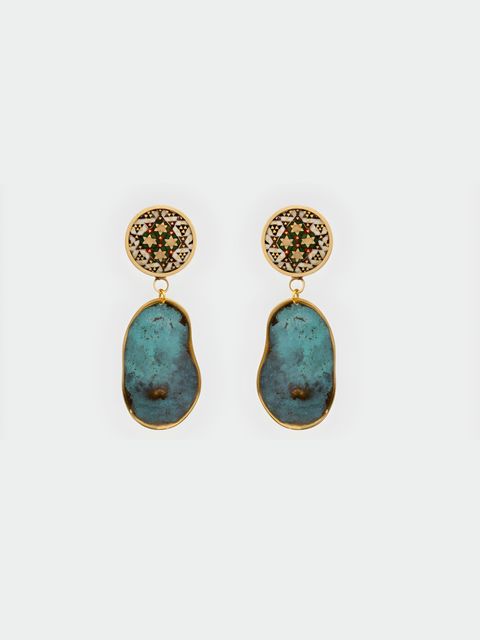 گوشواره زنانه برنج و خاتم تردیشنال آبی (زینت)