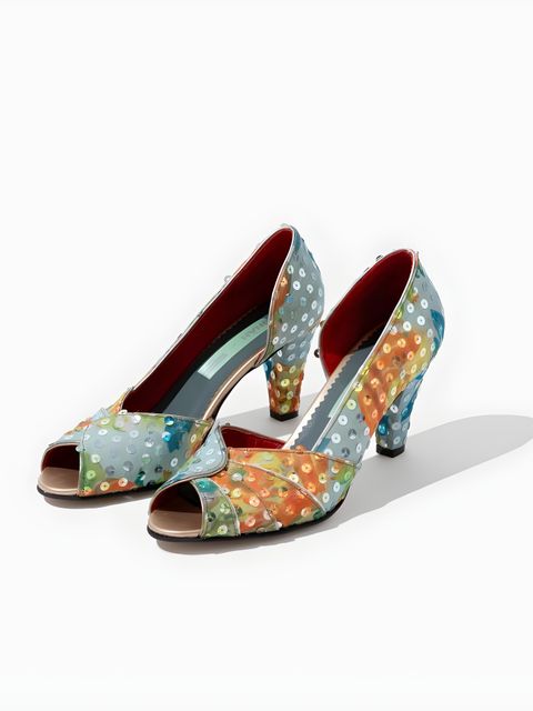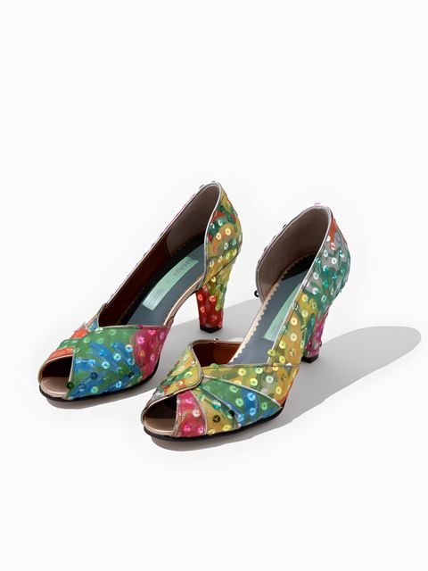 كفش زنانه پولک دوزی شده آبی نارنجی