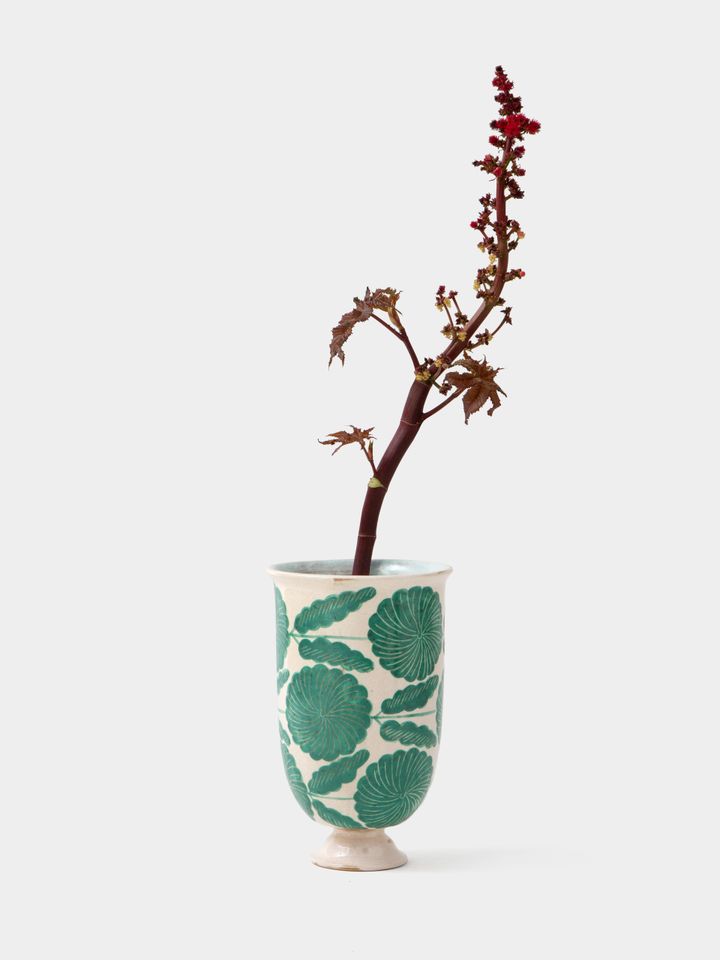 گلدان لعاب و گل رس میخک سبز