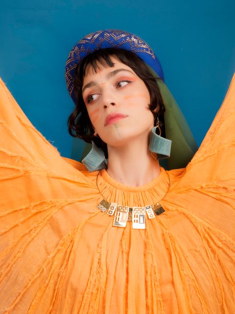 بلوز زنانه نخی نارنجی کم رنگ شلیتک