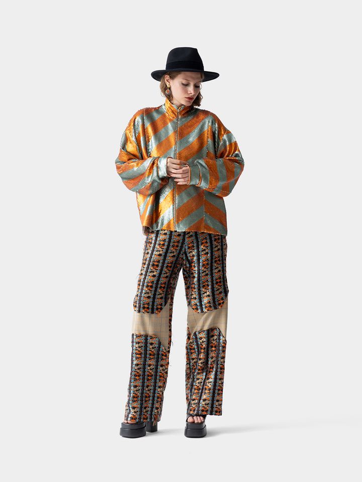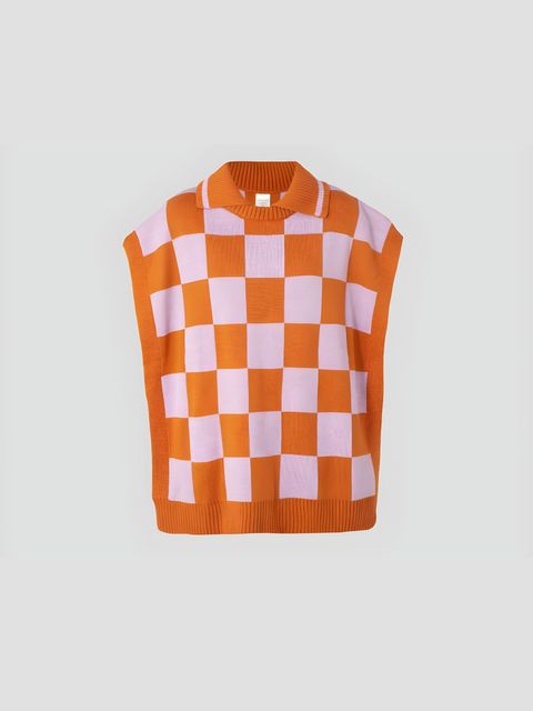 پلیور زنانه بافتنی چهارخانه نارنجی بنفش