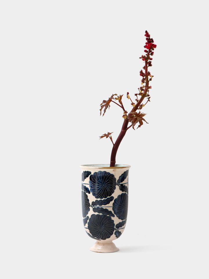 گلدان پایه دار کوکب سرمه ای