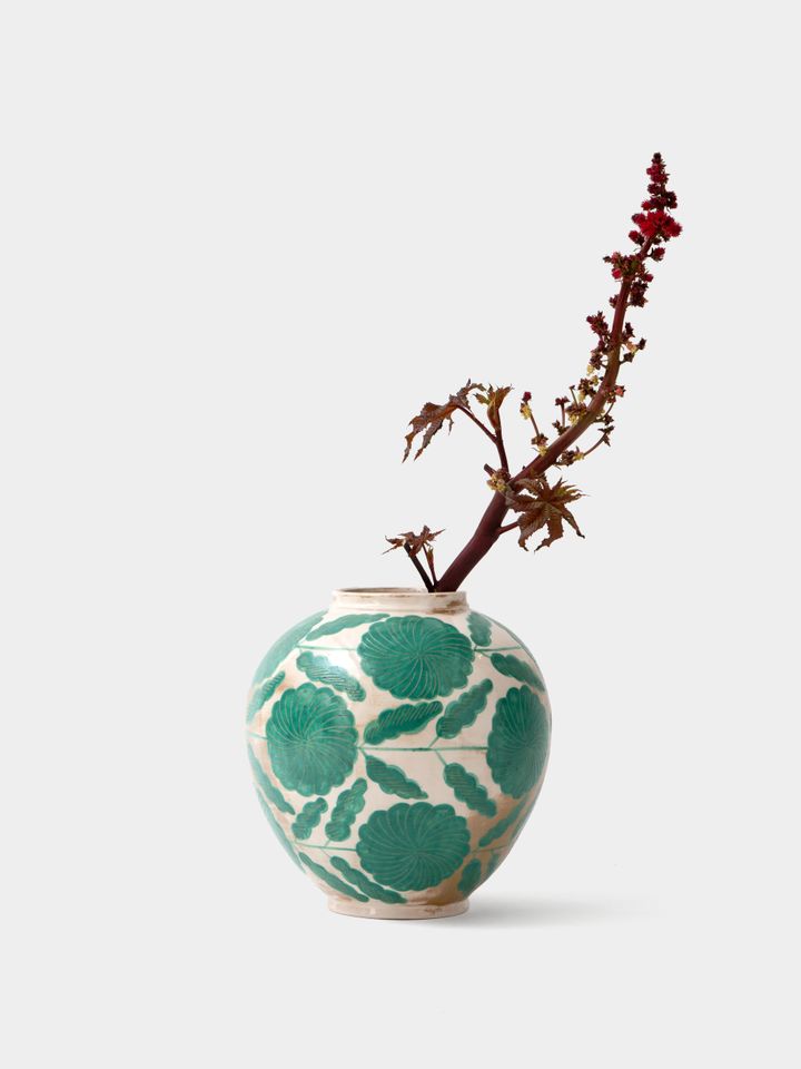 گلدان لعاب و گل رس میخک سبز