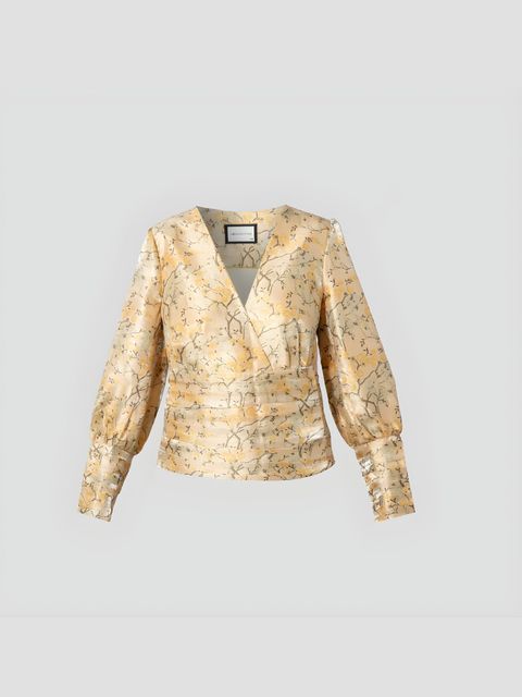 شومیز زنانه تافته ابریشم هندی طلایی ووشه