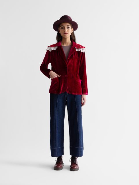 ست کت و سرهمی زنانه حریر زرشکی طرحدار یک