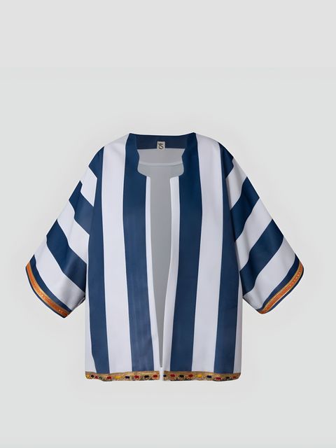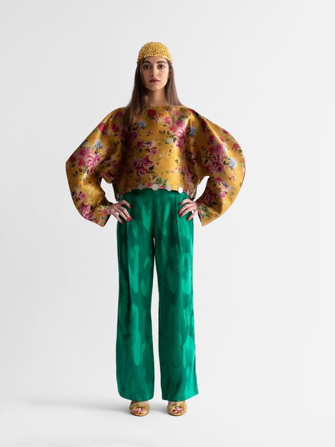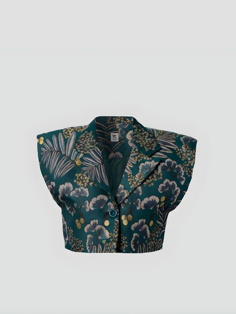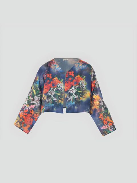 ست کت و سرهمی زنانه حریر ژرژت آبی طرحدار