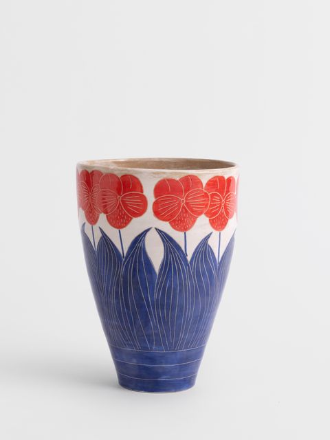 گلدان لعاب و گل رس گل میخک لاجوردی