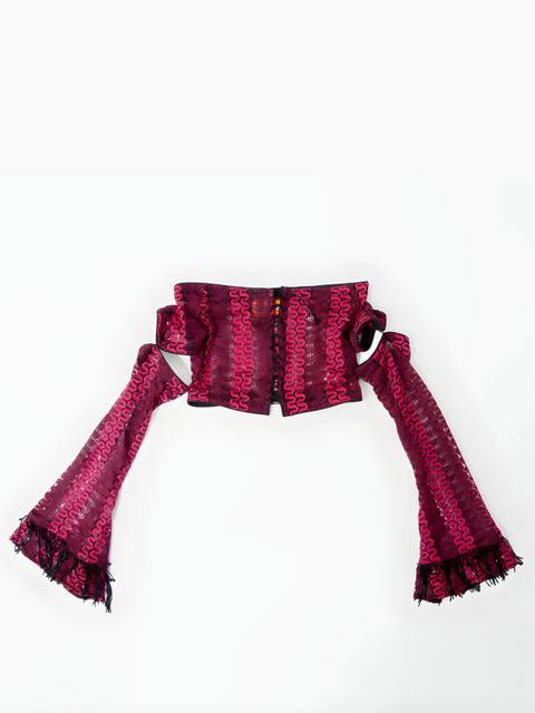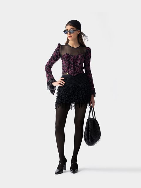 تاپ زنانه مشکی و بنفش سنگدوزی شده آستیندار