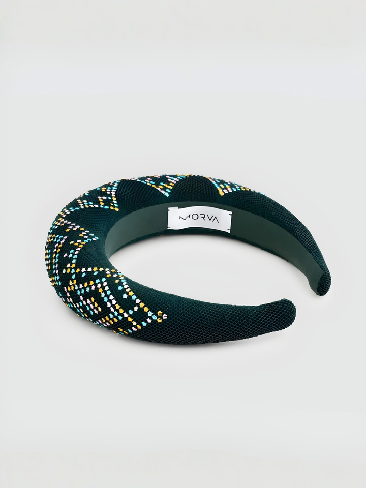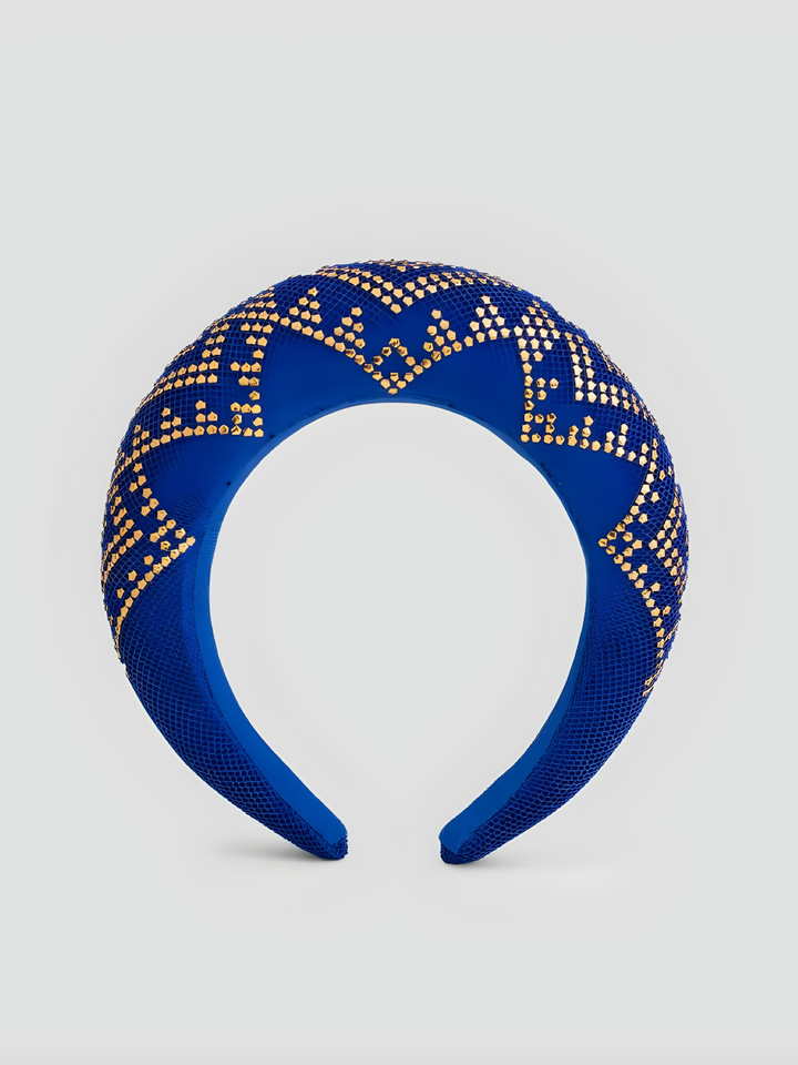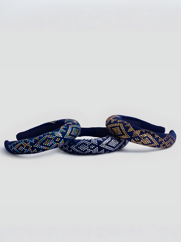 تل نخل سرمه ای با خوس دوزی نقره ای و طلایی 1