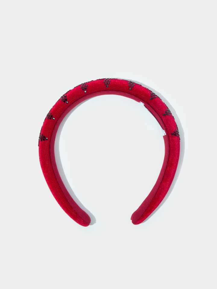 تل ستاره چهار پر خوس دوزی شده زرشکی