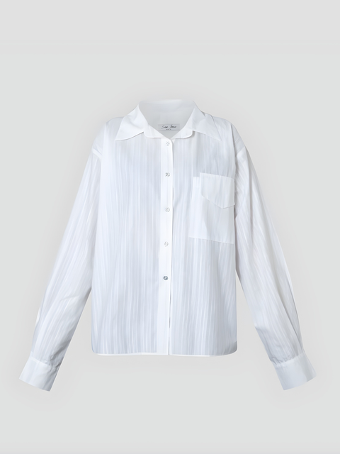 شومیز زنانه ژاکار کتان سفید جیب دار