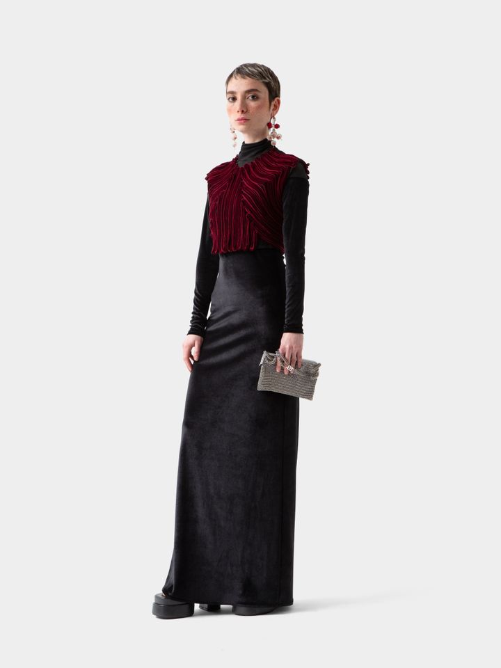 کراپ تاپ مخملی قرمز Evangeline velvet 2