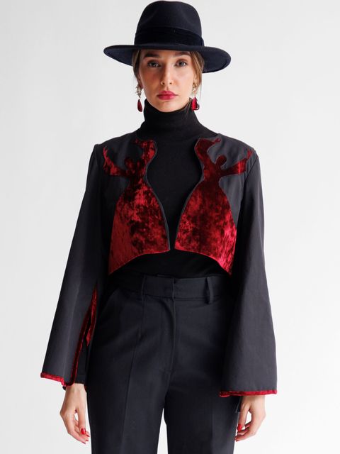 نیم تنه زنانه کوتاه مشکی تکه دوزی شده