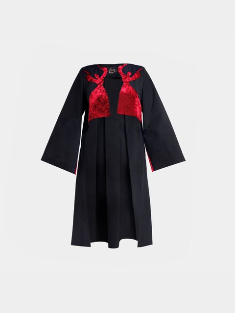پیراهن نخی مشکی و زرشکی تیتیش طرح دو